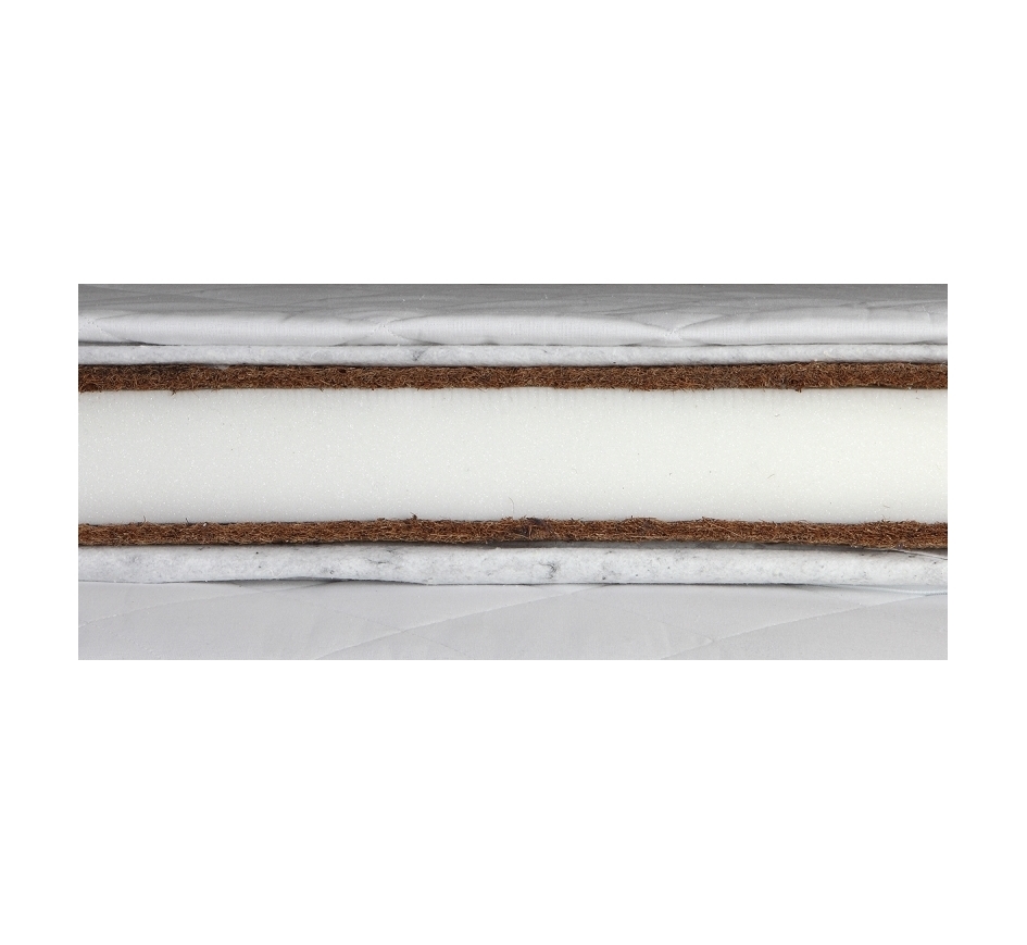 Madratsi all ja peal on kookosekiht ja keskel vetruv poroloonikiht,