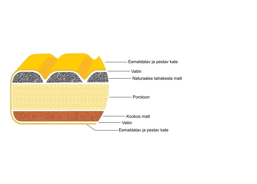 Madratsikatted on eemaldatavad ja masinpestavad, mis teeb hooldamise lihtsaks ja praktiliseks.