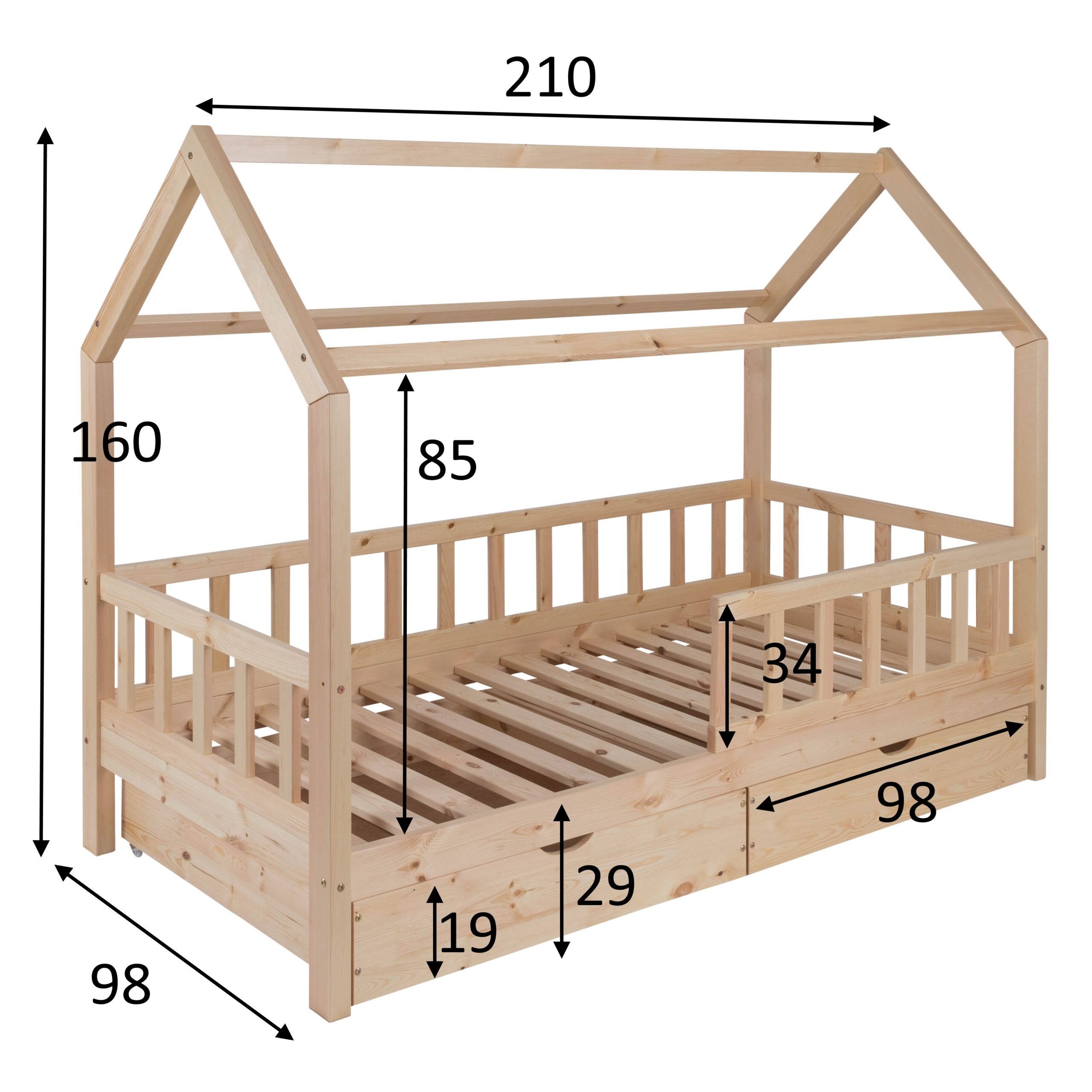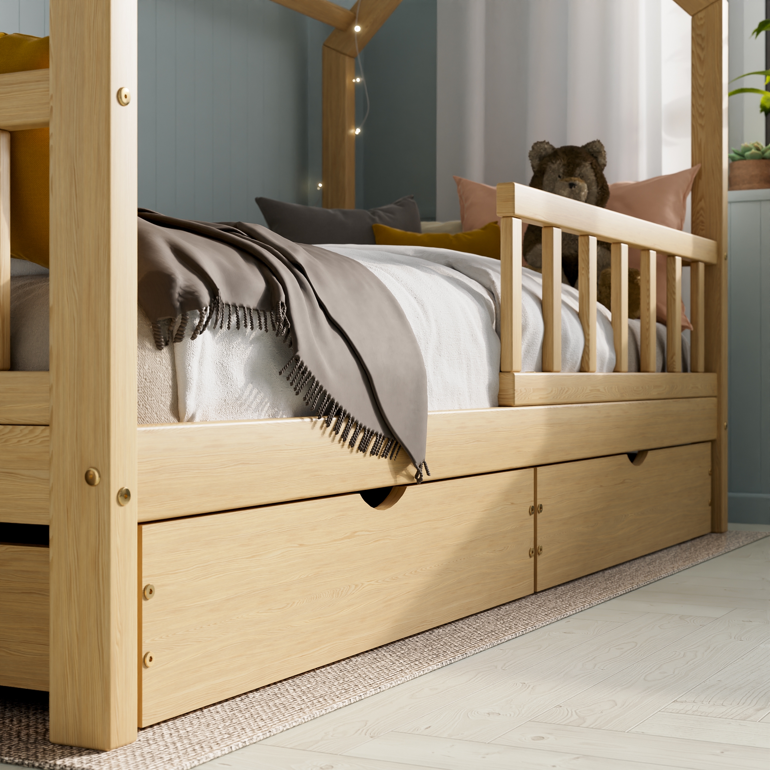 Majavoodi DreamHouse 80×160 + voodikastid, natural