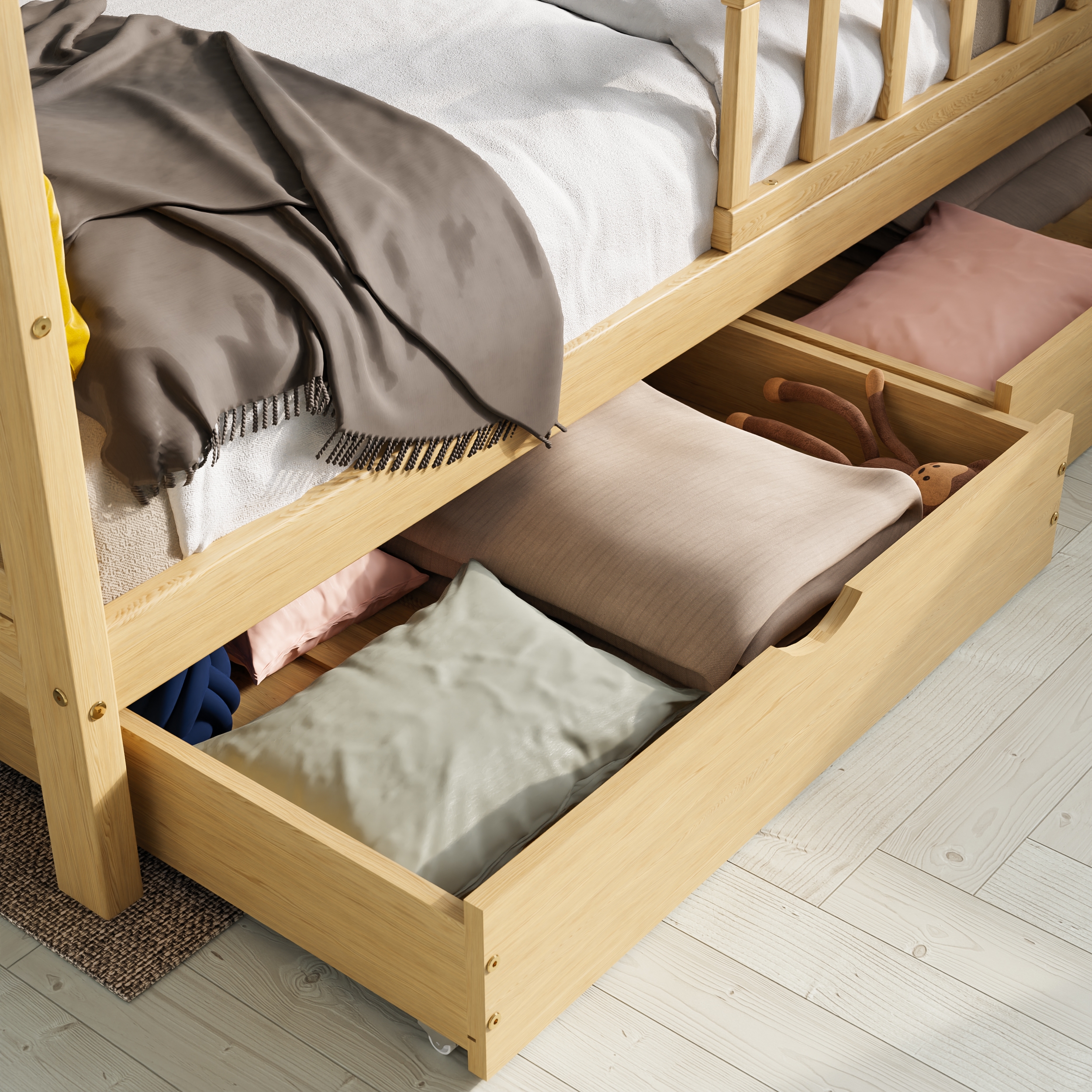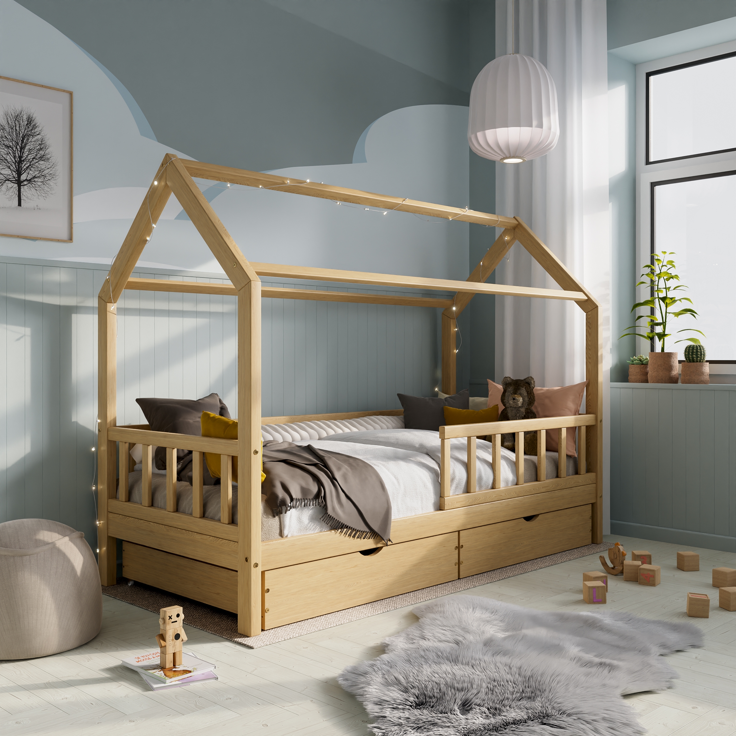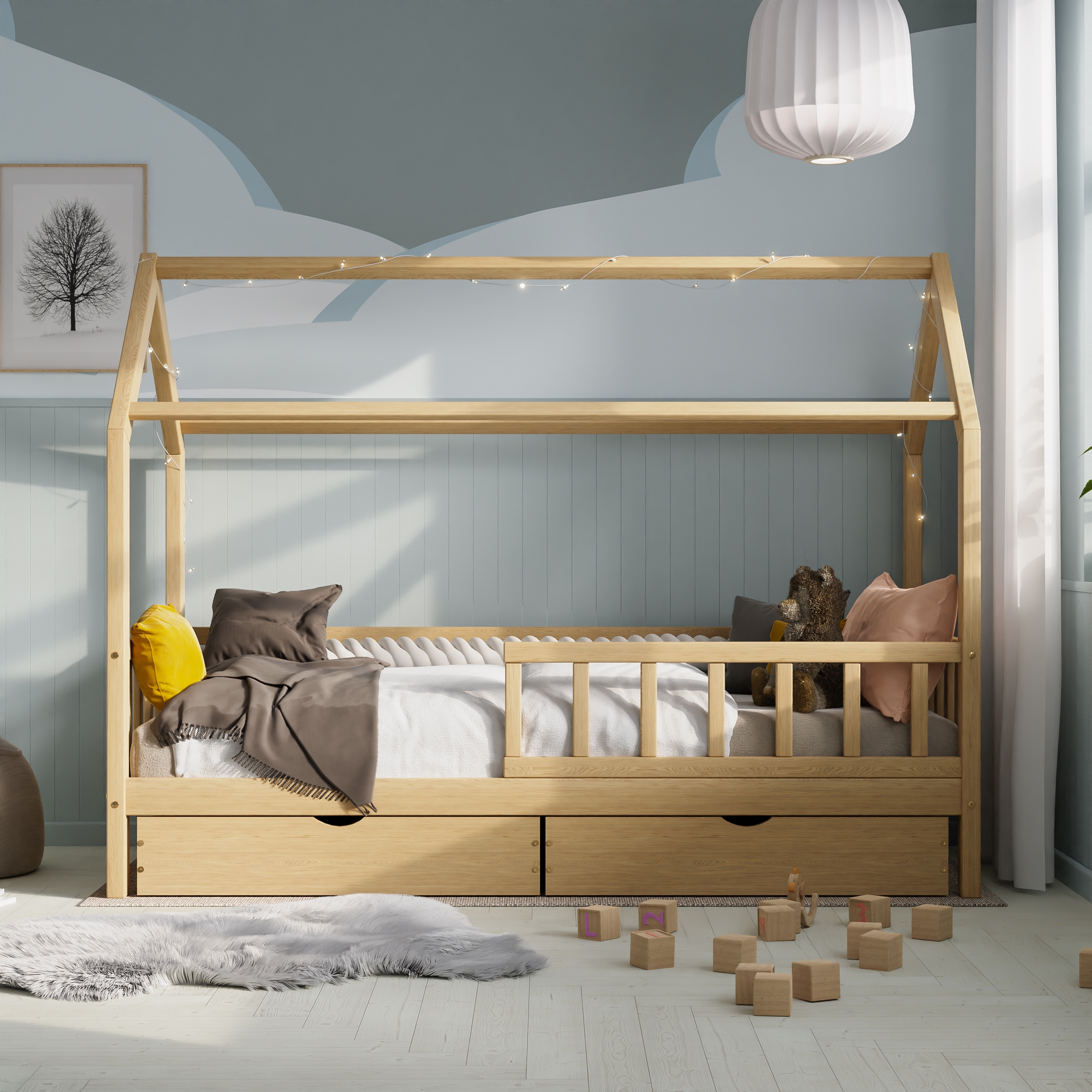 Majavoodi DreamHouse 90×200 + voodikastid, natural
