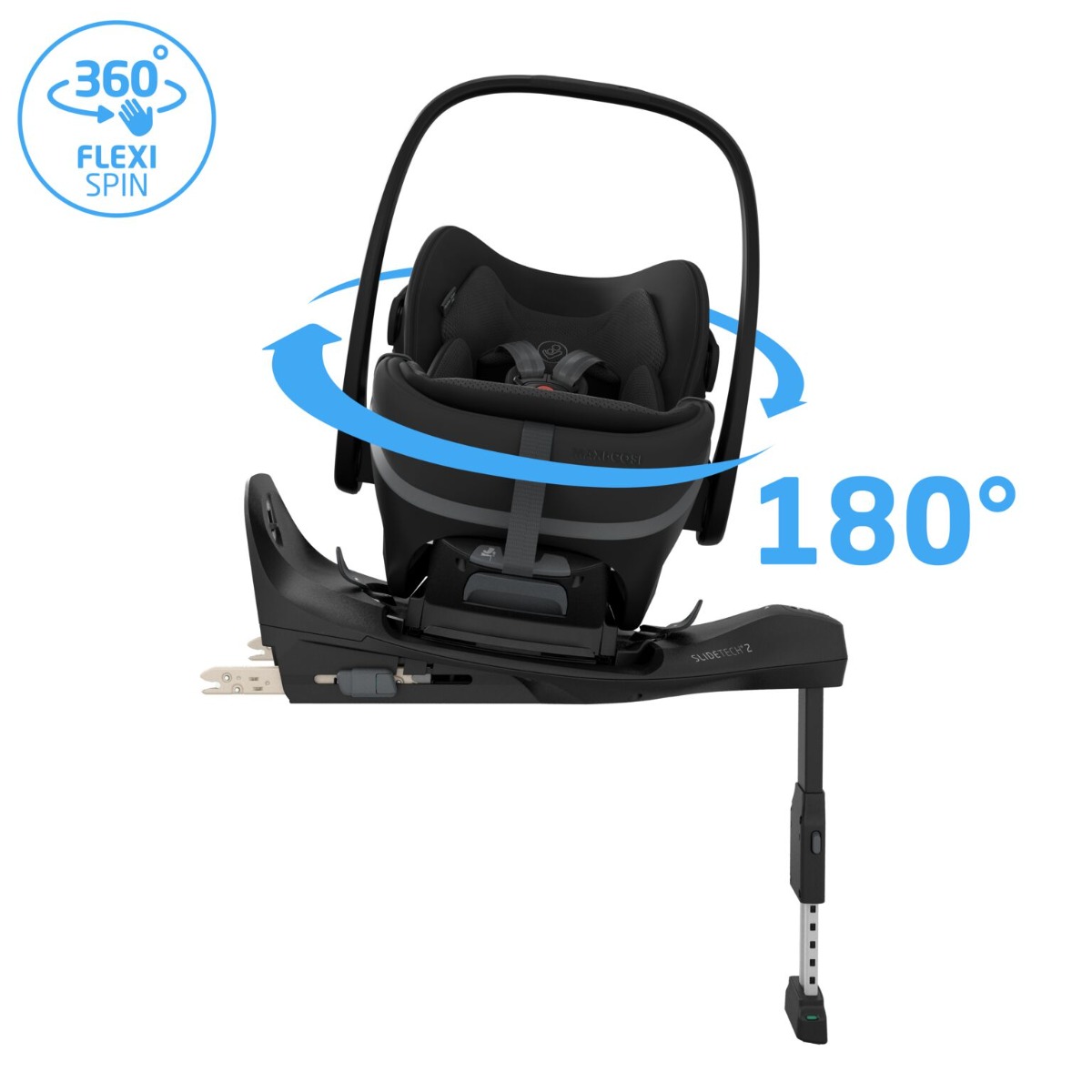 Koos FamilyFix Slide Pro alusega võimaldab SlideTech®2 süsteem turvahälli kuni 27 cm ulatuses välja libistada, et lapse autosse panek ja sealt välja võtmine oleks mugav ja seljasõbralik.
