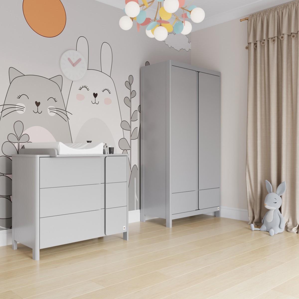 Kuigi kapp on kindla ja ajatu välimusega, on selle kõik nurgad õrnalt ümardatud, et vähendada vigastuste ohtu ning pakkuda lapsele turvalist keskkonda. Kahe uksega kapp ning mahukas alumine sahtel pakuvad rohkelt ruumi nii riietele kui ka muudele tarvikutele.